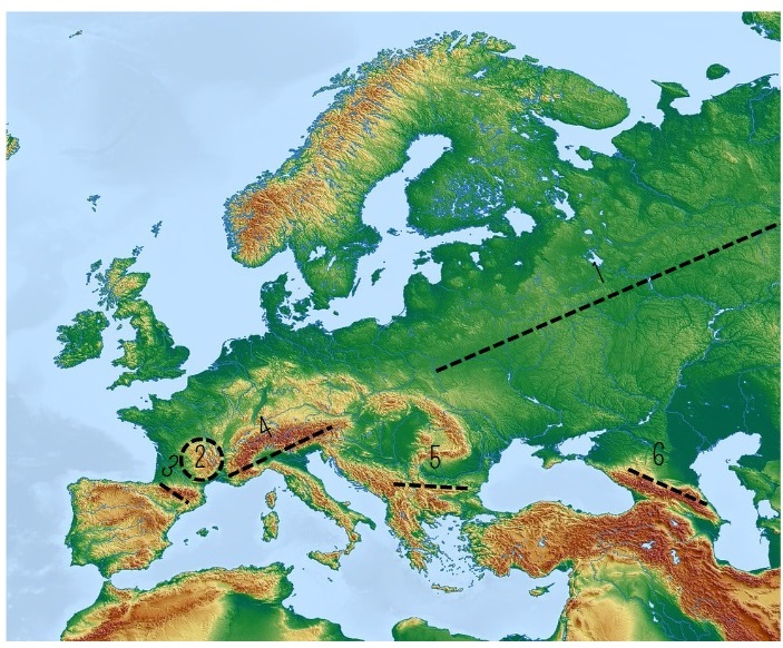 Fitxa que ha d'omplir l'alumnat sobre el relleu interior d'Europa, a partir de la recerca d'informació.