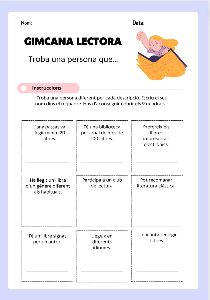 Cada alumne ha de trobar 9 persones per omplir els 9 requadres