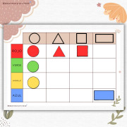 El PDF inlcou 3 taules diferents per a la classificació de figures geomètrices i elements diversos. Dues taules són de clasificació de las figures de cercle, triangle i rectangle i en una taula si afegeix la figura del rectangle.