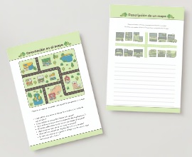 Este conjunto de dos fichas educativas ofrece una oportunidad emocionante para que los niños desarrollen habilidades relacionadas con las direcciones y la comprensión de los mapas de una manera divertida.