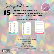 Es tracta de diferents activitats de Carnestoltes per treballar la lectoescriptura amb vocabulari de disfresses, la majoria d'animals 🦈🐡🐻🦖🦄🐨🐘🐙🪼