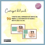 Aquest recurs conté 90 targetes amb la descomposició numèrica en base 10. Els números que trobaràs són del 10 fins al 100. Conté la representació gràfica, la descomposició en sumes i el nombre de desenes i unitats.