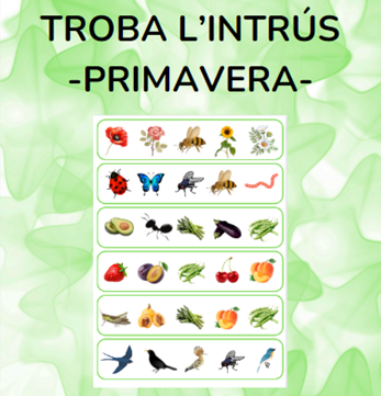 Làmina amb 6 propostes per trobar l’element que no guarda relació amb els altres.