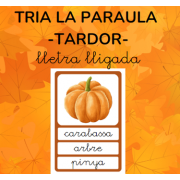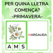 Aquest material consta de 30 targetes de vocabulari relatiu a la primavera. A la part de davant hi ha el dibuix i tres lletres per triar l’opció corresponent a la lletra inicial del dibuix. A la part de darrere hi ha la paraula escrita amb la inicial d’un altre color per tal que es pugui comprovar la resposta.
