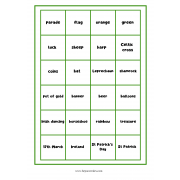 Juego de Bingo con vocabulario de Saint Patrick's Day, muy versátil, se puede usar el vocabulario para jugar al memory con las imágenes y palabras, y tiene 8 tarjetas grandes A4 para jugar a Bingo, usando las tarjetas de la imagen o la de la palabra. Ideal para aprener el vocabulario de esta festividad Irlandesa.
