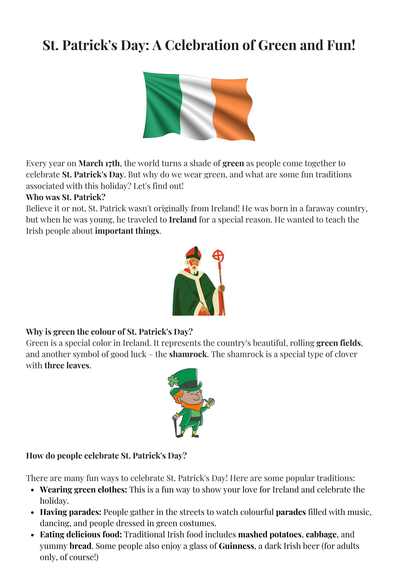 Reading comprehension 2 pages and multiple choice questions 1 page.