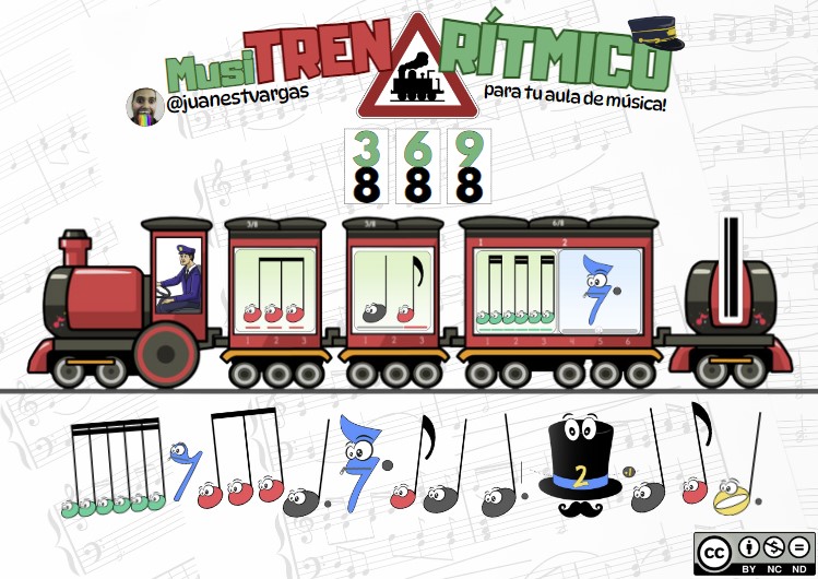 El MusiTREN Rítmico es un recurso genial para trabajar el lenguaje musical de la manera más visual y manipulativa posible. Puedes imprimirlo en tamaños A4 o A3 y convertirlo en uno de los recursos estrella de tu aula. A través de la analogía ritmo-tren, tus alumnos/as trabajarán y entenderán a la perfección conceptos tan abstractos como el tempo (velocidad del tren), el compás (cada uno de los vagones) o el tiempo (cada butaca), Conocerán y asimilarán de una manera visual y muy significativa las diferentes figuras musicales y la duración o espacio que ocupan en cada uno de los compases.