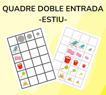Aquest material consta de 2 làmines amb un quadre de doble entrada: imatges de l’estiu i diferents tamanys. L’infant haurà d’ubicar les targetes d’imatges de diferents tamanys al quadre corresponent.