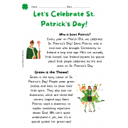 Lectura sobre St. Patrick's Day con vocabulario y preguntas multiple choice. Nivel A2.