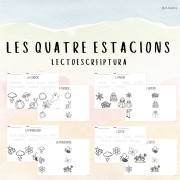 Material per treballar el procés de lectoescriptura a través de les quatre estacions de l’any. Cadascuna de les fitxes de les estacions conté: 7 paraules de vocabulari que s’ha de resseguir i 6 imatges que representen el vocabulari anterior. Es pot fer una lectura de les paraules i animar a l’alumnat a què les relacionin amb la imatge corresponent. Un cop fet això, es demana l’escriptura de les paraules al costat de la imatge.